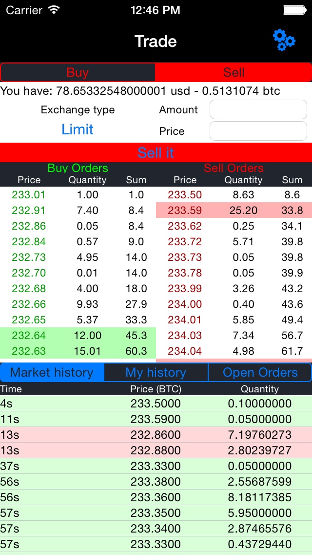 Tout est optimisé pour une utilisation rapide : remplissage automatique depuis l’ordre book, interface claire, annulation d’ordre en un tap et visualisation complète du marché.